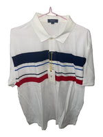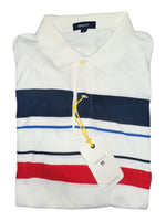 Style: Classic block-striped short-sleeve polo t-shirt with ribbed armbands for a refined look