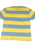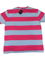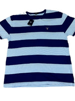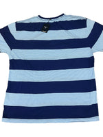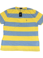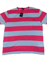 Style: Block stripe short-sleeve scoop round casual t-shirt with brand logo
